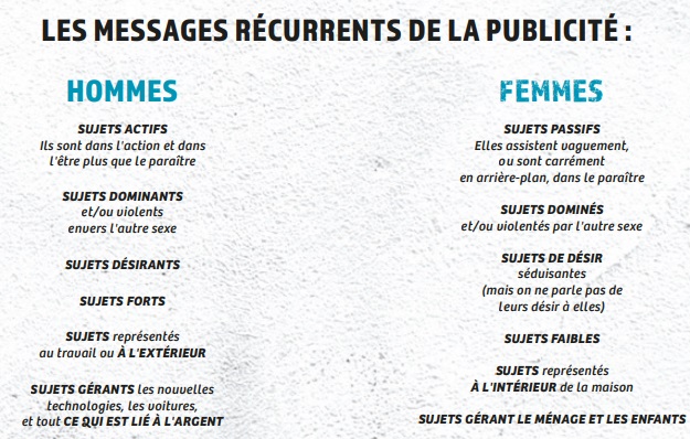 - Reportons les cas de publicités sexistes sous forme de plaintes auprès du Jury d’Éthique Publicitaire ou auprès du Conseil Supérieur de l’Audiovisuel.