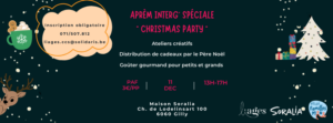15h30 – 17h00: goûter de Noël, distribution de cadeaux par le Père Noël Himself et nous posterons nos créations de cartes de Noël!