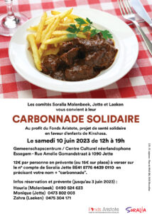 Les comités Soralia Molenbeek, Jette et Laeken vous convient à leur CARBONNADE SOLIDAIRE au profit du Fonds Aristote, projet de santé solidaire