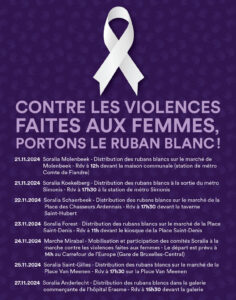Dans la cadre de la journée internationale de lutte pour l’élimination des violences envers les femmes du 25 novembre 2024, le comité Soralia Anderlecht organise une distribution de rubans blancs dans la galerie commerciale de l’hôpital Erasme.