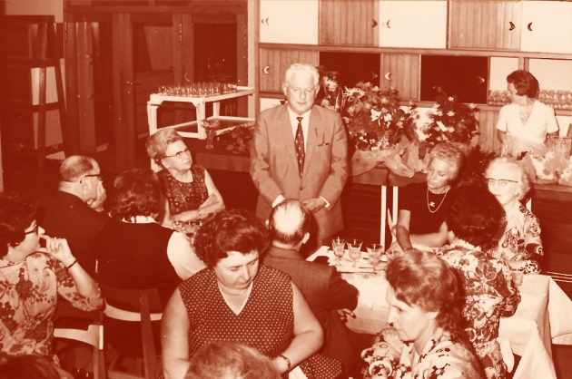 Journée d’études des FPS, octobre 1972. Au centre, debout, se trouve Edmond Leburton, homme politique.